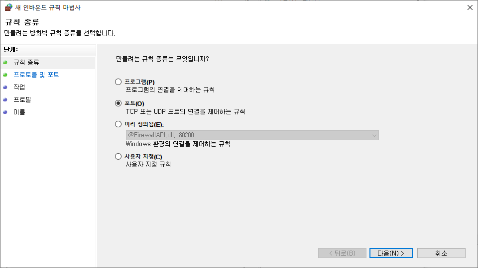 1-2) 인바운드 규칙 - 새 규칙 추가