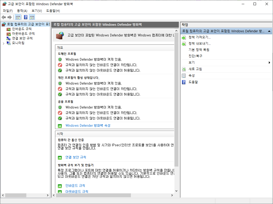 1-1) 윈도우 시작 창에 "고급 보안이 포함된 Windows Defender 방화벽" 검색