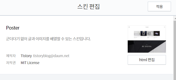 티스토리 블로그 관리 > [꾸미기] 스킨 편집 > html 편집 클릭